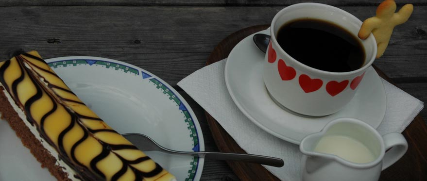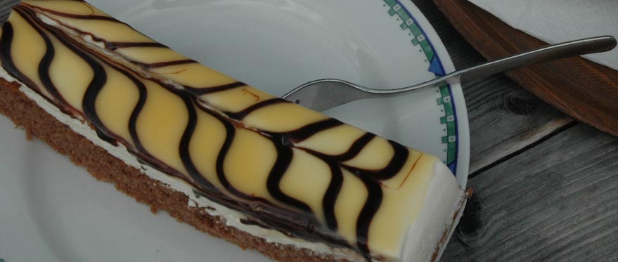 Hausgemachte Mehlspeisen, besonders unsre Spezialität die Eierlikörschnitte.